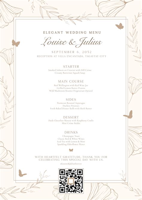 free wedding menu template word document
