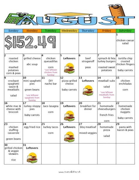 monthly kid friendly dinner menu